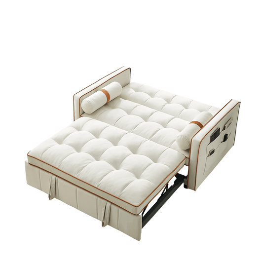 Modern 55.5" Pull Out Sleep Sofa Bed 2 Seater Loveseats Sofa Couch with side pockets, Adjsutable Backrest and Lumbar Pillows for Apartment Office Living Room