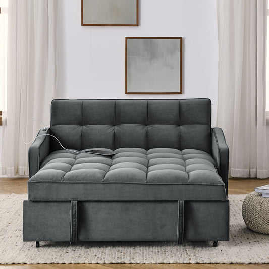 Loveseats Sofa Bed with Pull-out Bed,Adjsutable Back and Two Arm Pocket,TypeC and USB Charging with Copper nail,Grey (47"x53"x31")